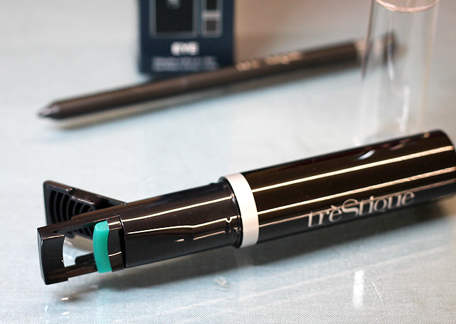 Eine weitere Marke, die ich vor der Ankunft meiner BoxyCharm Base Februar 2021 noch nicht kannte, ist trèStique. Diesen Namen trägt das nächste Produkt, das ich aus meiner Box ausgepackt habe. Es handelt sich dabei um ein Set aus einer Mascara mit eingebauter Wimpernzange und einem Eyeliner. Am unteren Ende des sehr dunkelgrauen Eyeliner-Stiftes befindet sich ein Smudger-Gummi für den perfekten Smokey-Look, und ein Spitzer für die hochdrehbare Spitze.