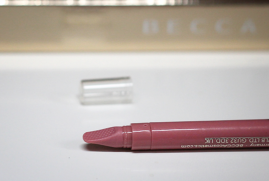 An der unteren Seite verfügt der Stift über einen kleinen, herausnehmbaren Anspitzer. Unter einer durchsichtigen Kappe verbirgt sich außerdem eine kleine, gummiartige Spatel. Diese ist wohl zum Verblenden harter Linien gedacht. Der Stift konturiert und definiert die Lippen und soll bis zu 8 Stunden lang haltbar sein.