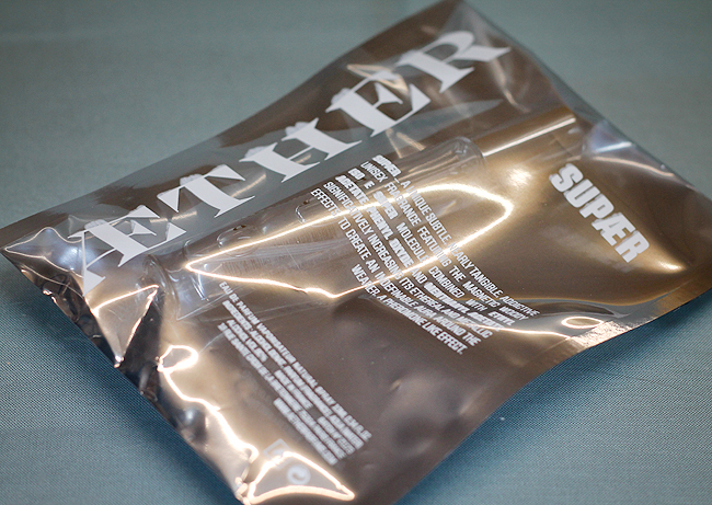 Zu guter Letzt grabe ich aus meiner Jänner-Box noch eine geheimnisvoll aussehende Kunststofftüte aus. Diese silbrig-metallisch glänzenden Schutzbeutel kenne ich doch schon! Bisher waren in diesen Säckchen immer tolle Molekül-Parfums enthalten. Und auch der betörende Geruch, der mir gleich beim Öffnen der Goodiebox Jänner 2022 entgegenströmte, lässt Ähnliches vermuten! Tatsächlich entnehme ich der Tüte einen 10ml-Zerstäuber des Supaer Eau de Parfum.