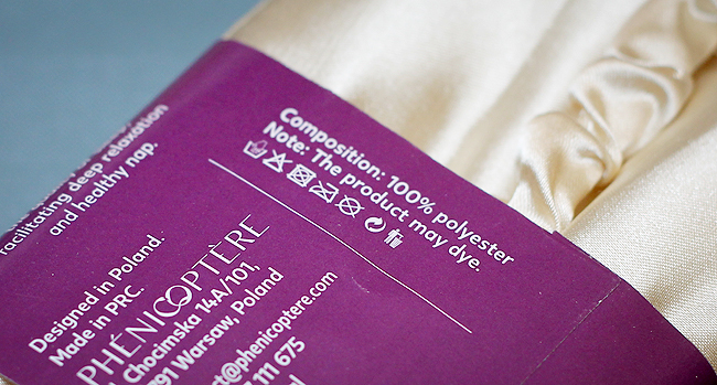 Nun ist Maulbeer-Seide die hochwertigste und feinste Seide, die die Natur hervorbringt. Da freut man sich doch direkt darauf! Packt man dann die Maske aus, fällt einem ganz schnell die Beschreibung auf der Rückseite der Papierlasche, mit der sie eingeschlagen ist, ins Auge. Und da steht dann gar nichts mehr von Seide. Weder Maulbeer, noch sonst etwas Vergleichbares. Hier ist dann von 100 % Polyester die Rede. Und „echte Seide von der Polyester-Raupe“ 🙄 ist dann doch nicht ganz soooo edel und erstrebenswert. Kann ich verstehen, dass man da verärgert ist. Bin ich auch.